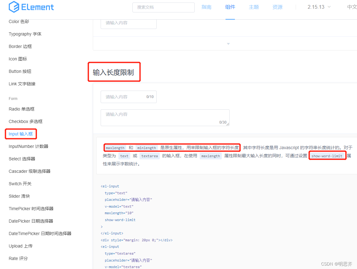 注意:开启属性show-word-limit可以显示字数统计,配合 maxlength 属性来限制输入长度