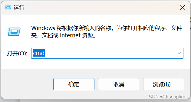 使用WIN+R打开运行窗口,输入cmd后进入命令行工具: