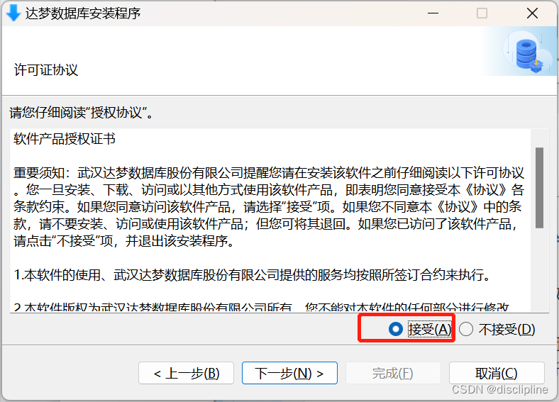 安装之前请阅读并接受许可证协议,并点击【接受】: