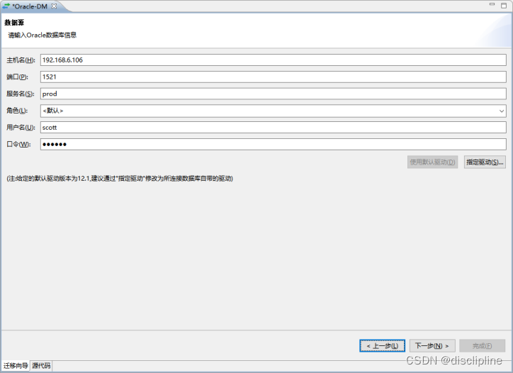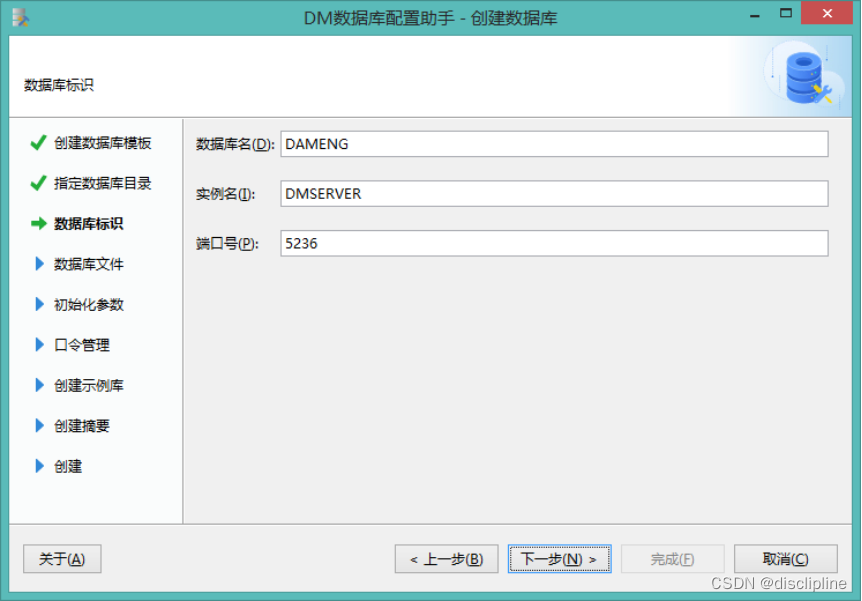 输入数据库名称、实例名、端口号等参数,如下图所示: