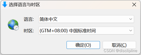 双击运行【setup.exe】安装程序,请根据系统配置选择相应语言与时区,点击【确定】按钮继续安装。如下图所示