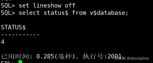SET FEEDBACK OFF; --显示当前 SQL 语句查询或修改的行数