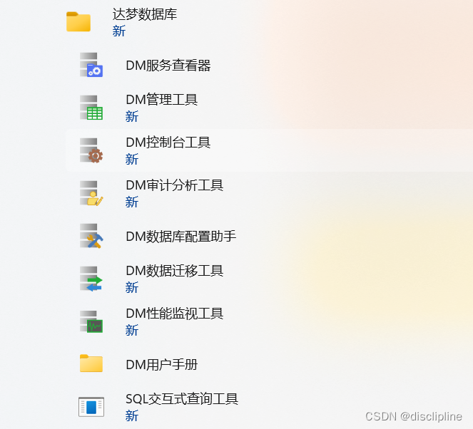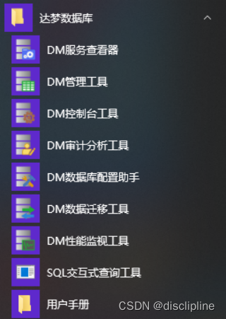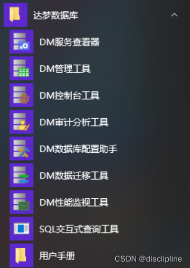 可在Window的【菜单】中看到达梦数据库的相关组件