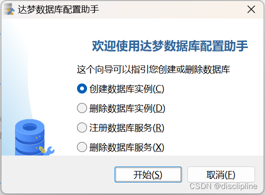 此处建议选择【创建数据库实例】,点击【开始】进入下一步骤,如下图所示: