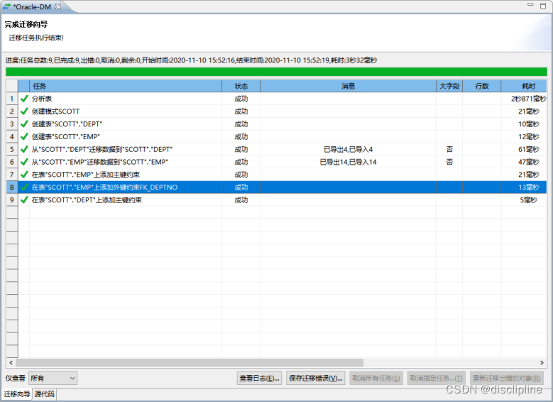 查询记录迁移后数据库中要迁移的所有对象名称,如下图所示: