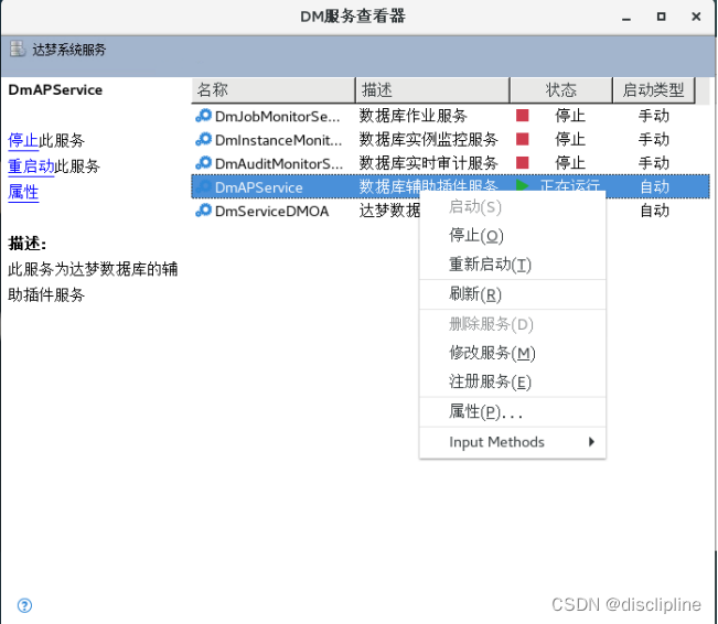 DM服务查看器就是查看数据库服务的工具,可以管理(启动停止),查看数据库服务的各个服务的状态,方便对数据库实例进行管理。