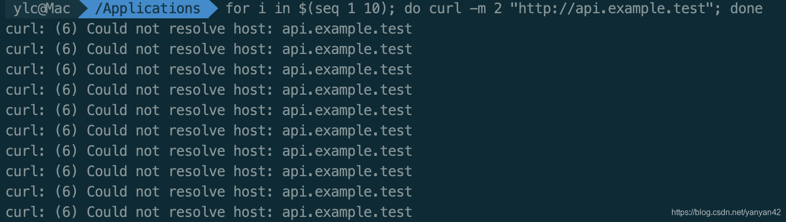 for i in $(seq 1 10); do curl -m 2 "http://api.example.test"; done