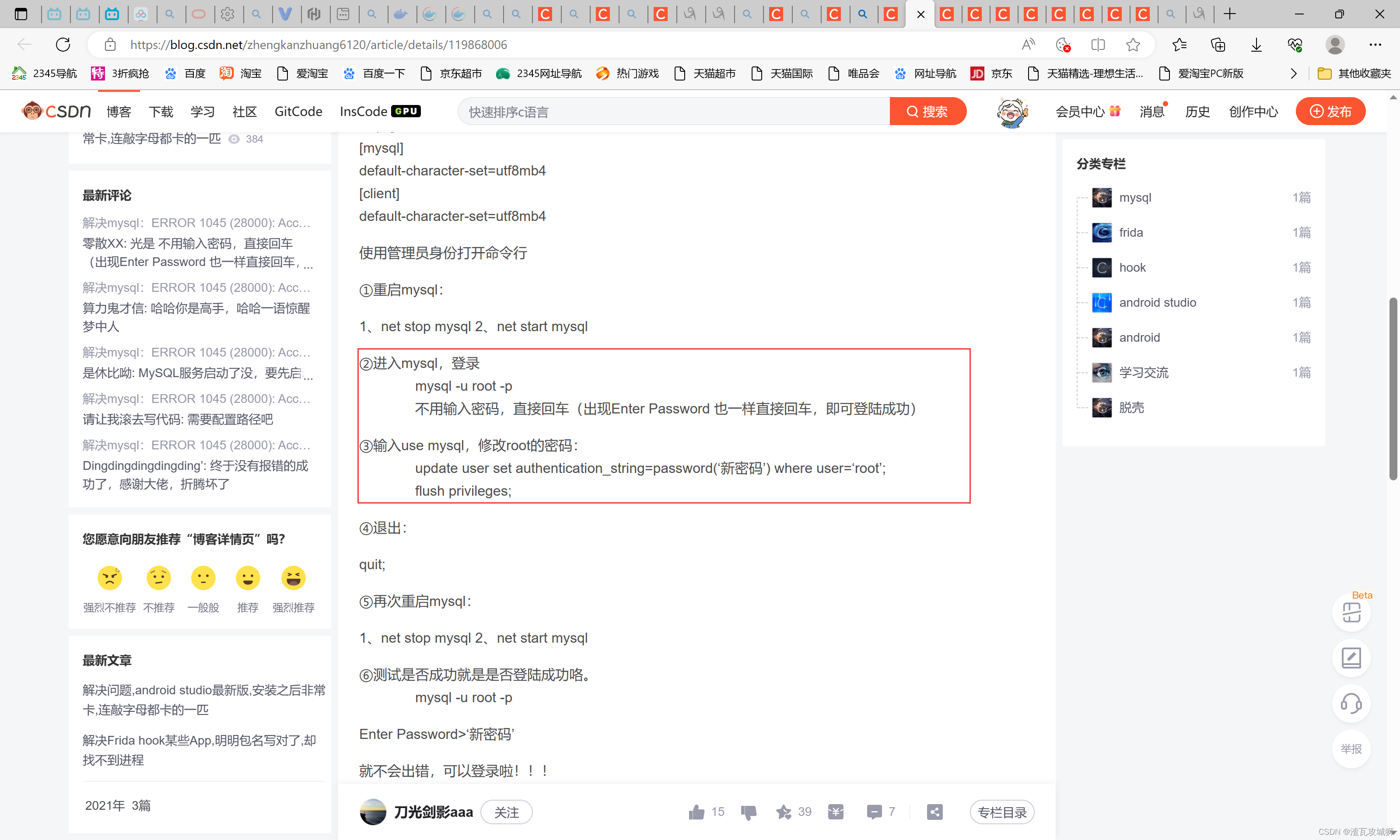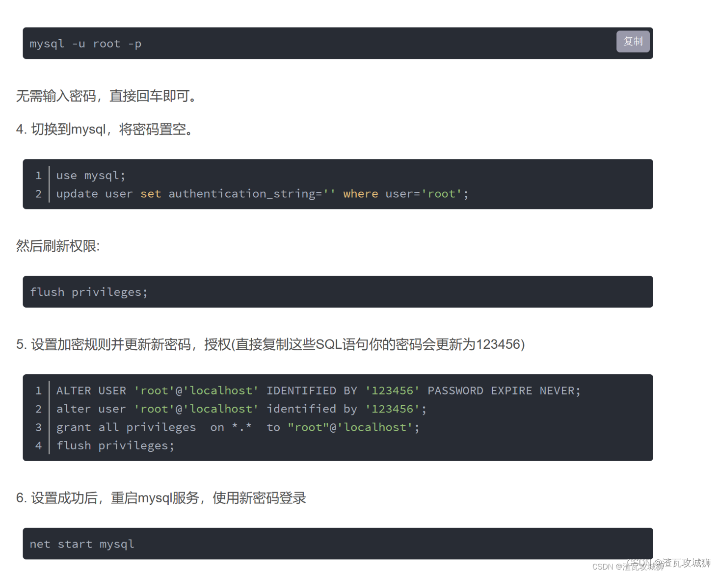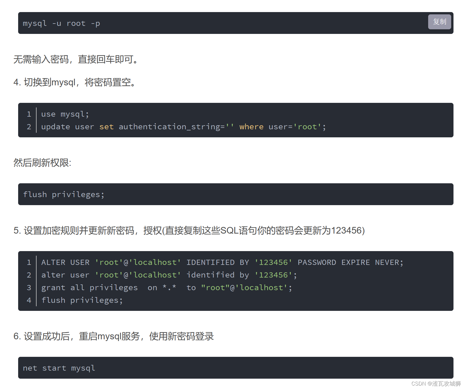 然后下面这篇博文就说,要改密码,反正他改了密码就行了: