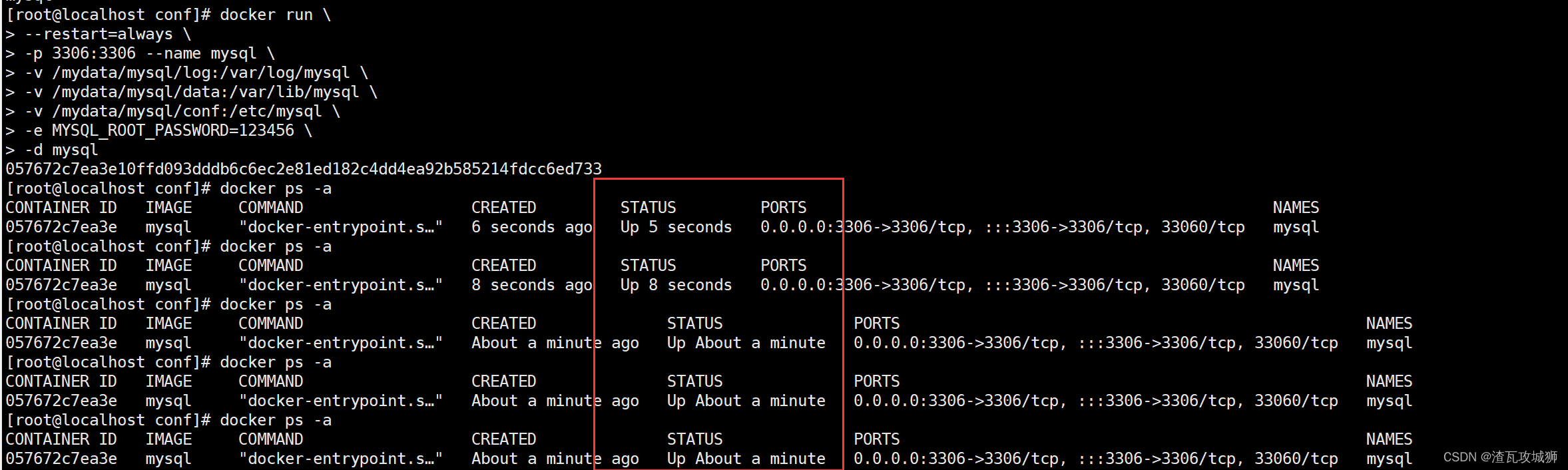 重新启动容器,发现也一直是UP状态了,说明启动成功: