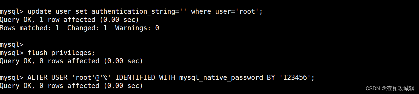 可能是博主多写了把,其实这里是没有password的,修改密码直接是: