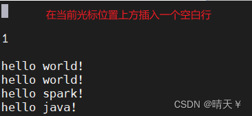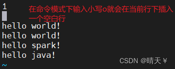 | o | 在下面插入空白行并允许插入,也即是在当前行下插入一行空白行,并把模式设置为输入模式 |