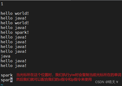 | p | 将拉出的文本放置在当前的光标位置前 |