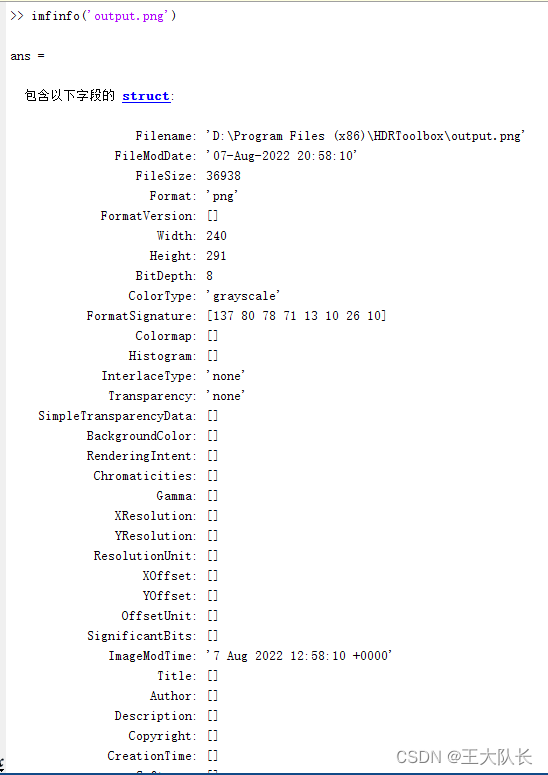我们在命令行窗口使用imfinfo函数能看见该图片更为详细的信息: