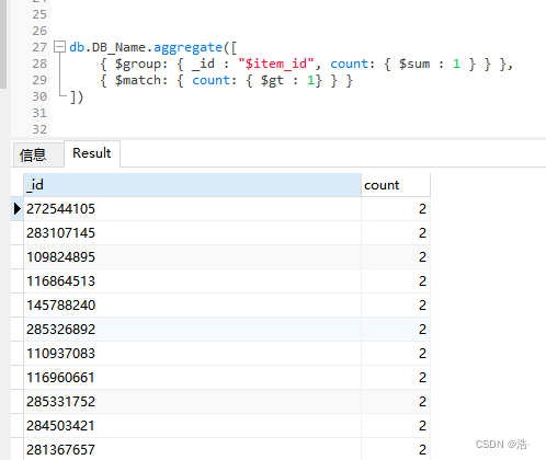 $count用来统计重复出现的次数, $match来过滤没有重复的数据;