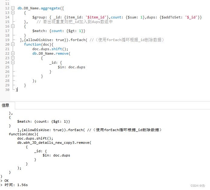 ],{allowDiskUse: true}).forEach( //(使用forEach循环根据_id删除数据)