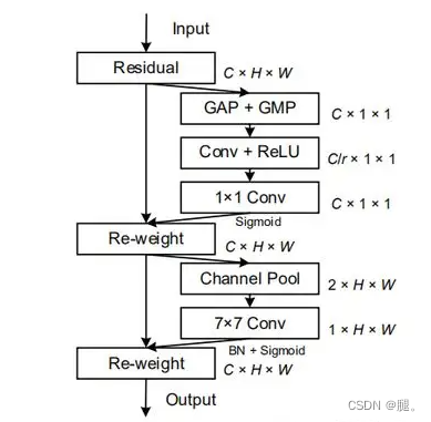 CAM和SE类似,只是SE只采用了全局平均池化, 而CAM同时使用了平局池化和最大池化,这样在一定层度上能降低池化带来的信息丢失