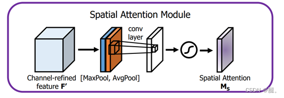 SAM首先做一个全局最大池化和全局平均池化,然后对于channel做从concat操作,经过一个卷积操作,将channel降为1,再经过sigmoid生成空间注意特征图,最后与通道注意特征图做乘法。