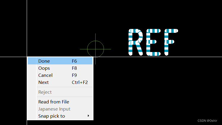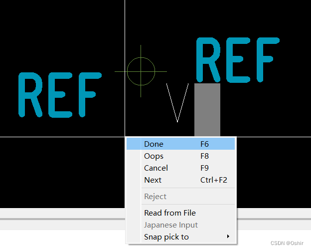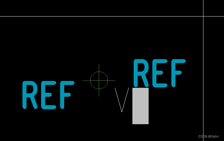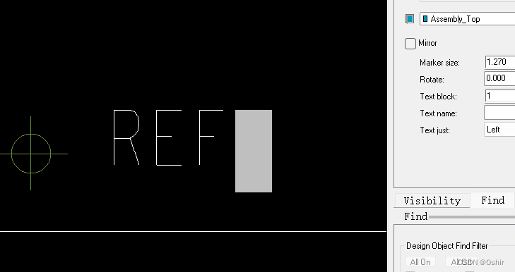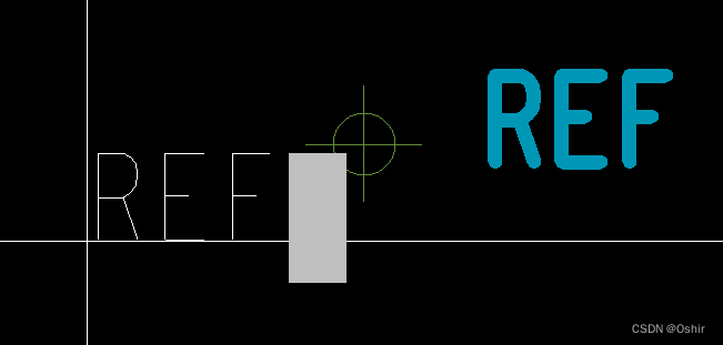 3.14 将三个文本放置到原点,点击选中文本REF,如下图;