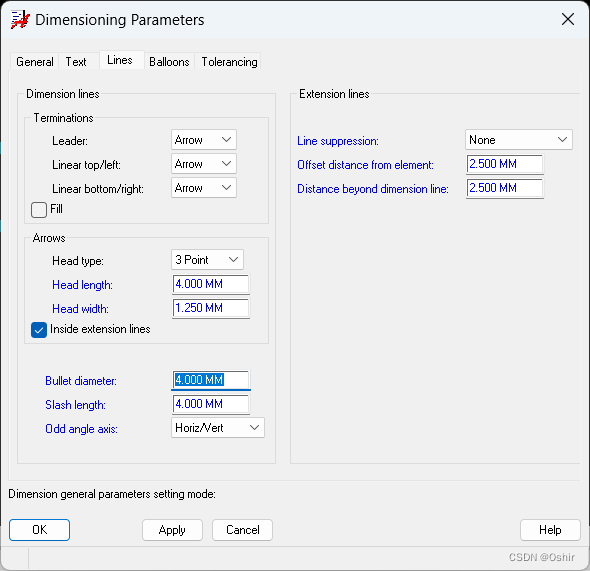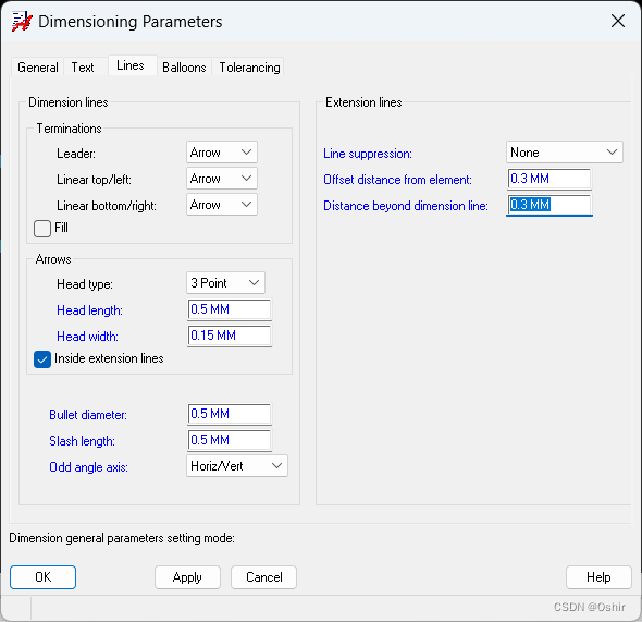 弹出对话框Dimensioning Parameters,选择Text文本设置,如下图;