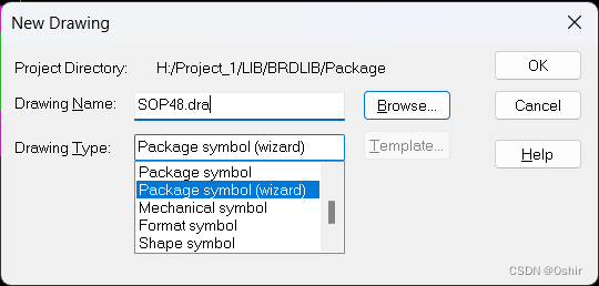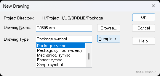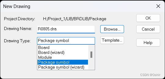 这里说明一下,Package symbol用于制作不规则的元件封装,而Package symbol(wizard)用于制作规则的元件封装,如IC等。这里选择Package symbol