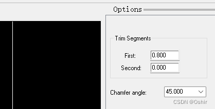 3.16 修改倒角尺寸,选择菜单栏Dimension->Chamfer,如左下图,右侧Options修改First这一栏,为0.8,如右下图。这样倒斜角设置为45°。