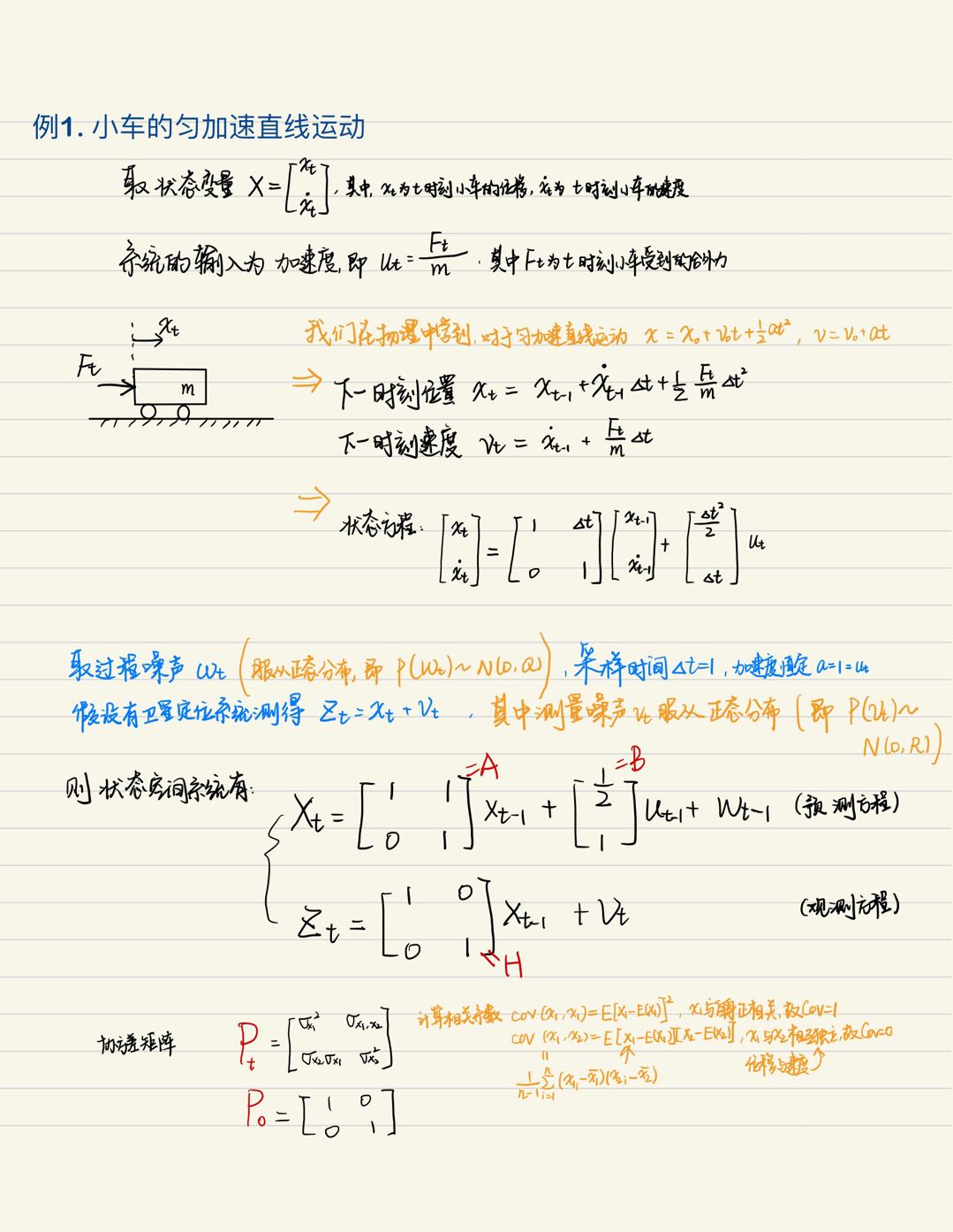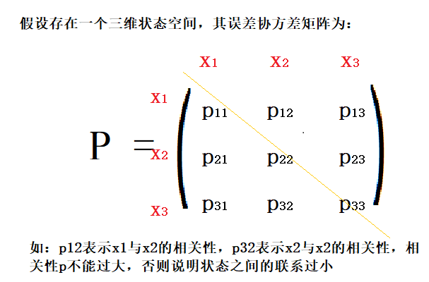 ②误差协方差矩阵P用来描述该时刻状态变量间的联系;Q为噪音矩阵,意思是变量间关系也受外界影响;