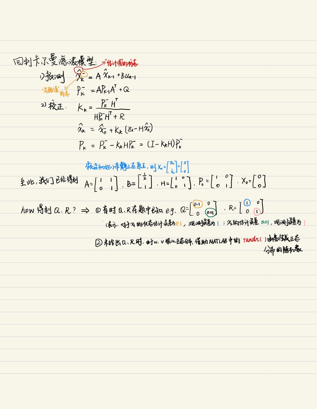 Q = [0.1 0;0 0.1];%假设的过程预测噪声的协方差矩阵(实际上是一个变量,很难得到)