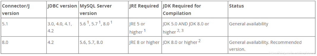 下图是官网上mysql-connector-java的版本对应的mysql版本和jdk的版本。