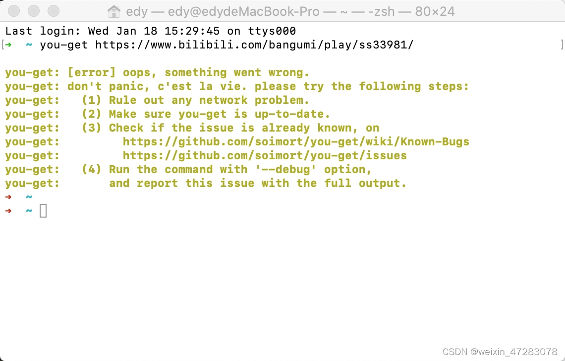 报错描述:正常输入指令下载视频,终端提示 some thiing went wrong
