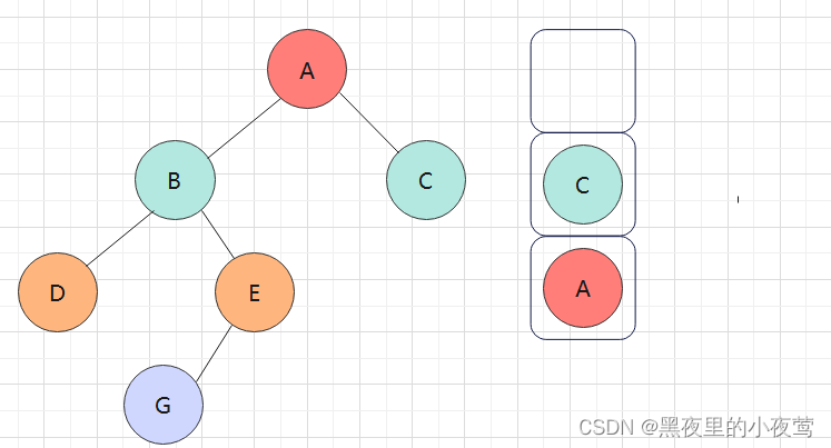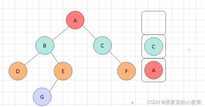 扫描到C,创建结点并赋值,根据 k = 2,C作为右孩子链接到栈顶元素(A)
