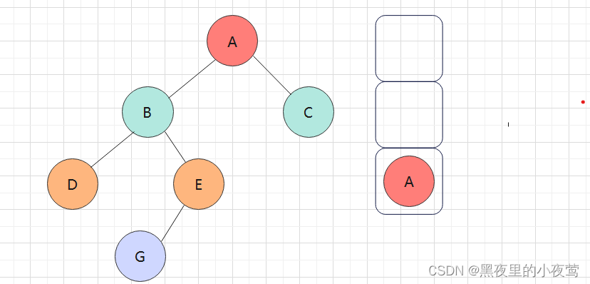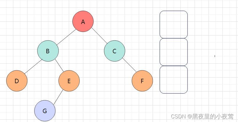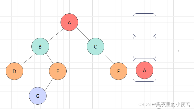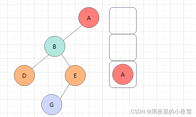 扫描到 G,创建结点并赋值,根据 k = 1,将G作为左孩子,链接到栈顶元素(E)