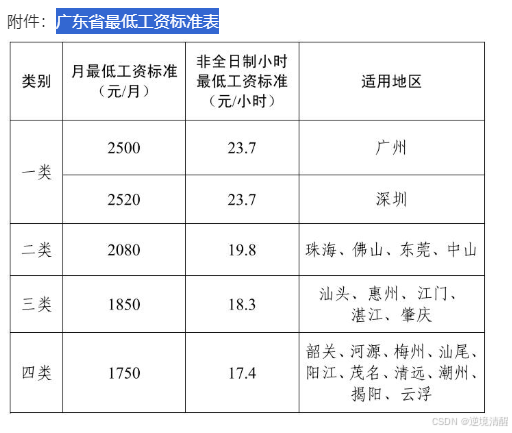 广东省最低工资标准表