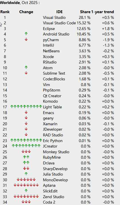 如果你相信集体智慧,Top IDE索引可以帮助你决定在软件开发项目中使用哪个IDE。
