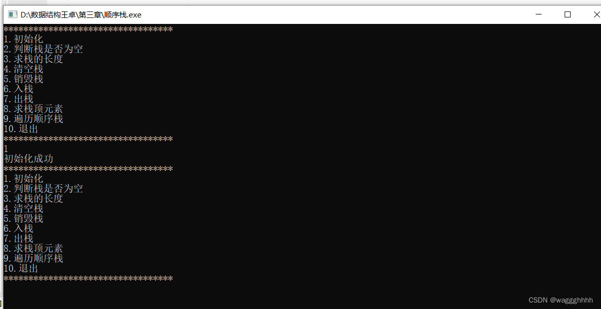 栈是一种操作受限的线性表,虽然操作受限,但是与线性表有点类似,只不过栈的插入和删除都在表尾而已。而我在本文中实现的顺序栈有点类似顺序表。我们也需要注意到顺序栈虽然实现简单,但是其容易发生溢出,在栈满的时候,还要入栈,则会上溢,而在栈空的时候,还要出栈,则会下溢,针对这个问题,我将在下一篇文章的链栈解决这个问题。