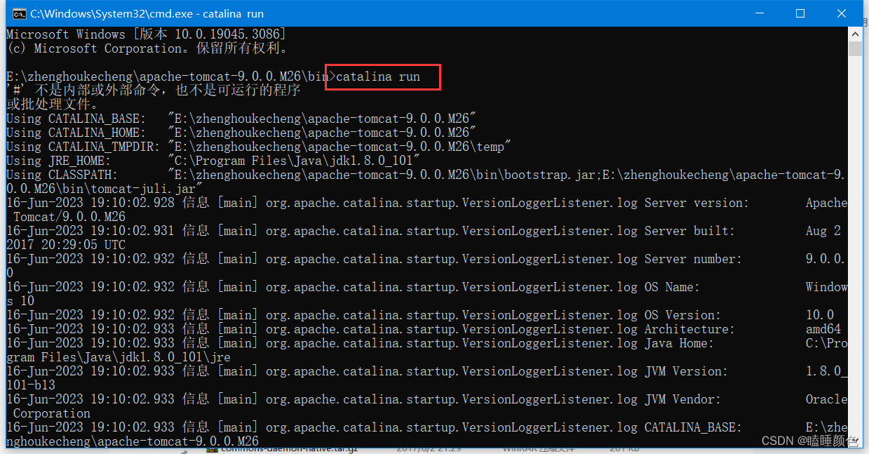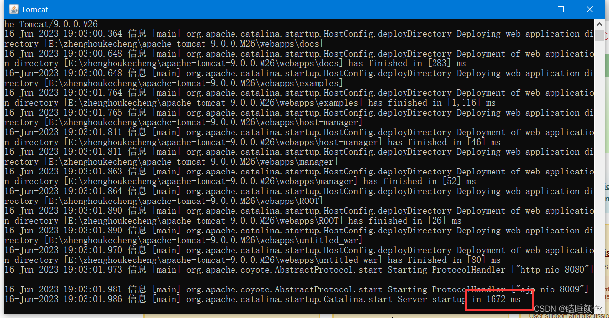 方法②:通过在cmd命令行输入以下命令实现:catalina run,这样的话最后也会出现时间,说明也可以。
