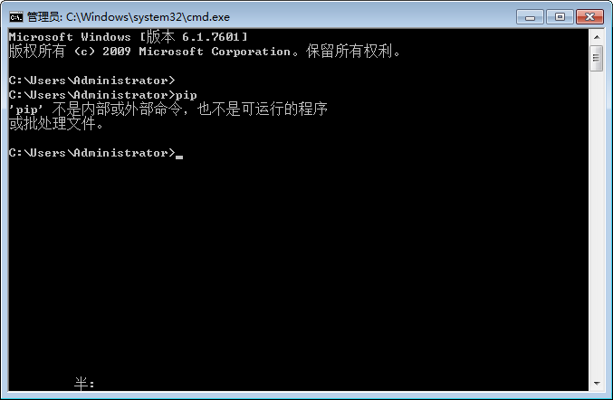 然而有时敲入pip命令会提示‘pip’不是内部或外部命令。。如图: