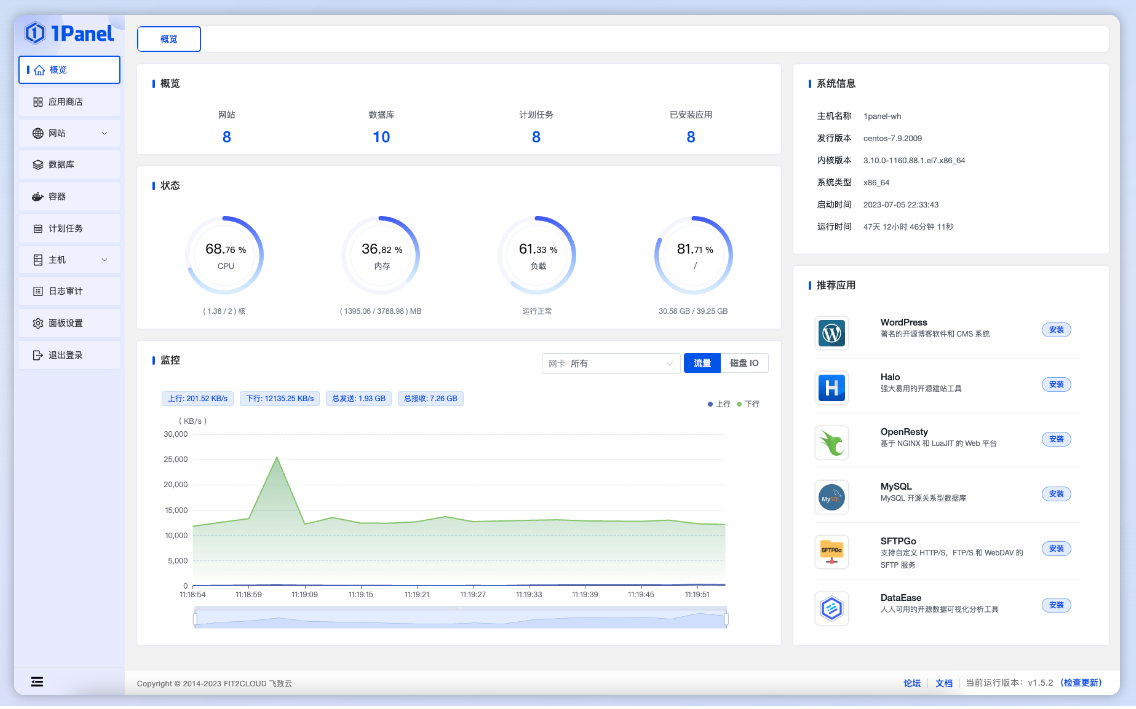 1panel 简介:新一代的 Linux 服务器运维管理面板,界面简洁美观,可以快速建站、高效管理、安全可靠、一键备份等。