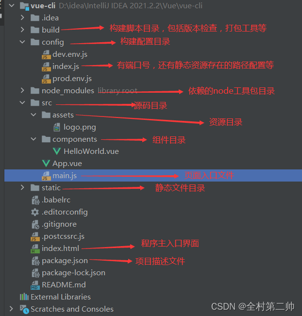 首先,用IDEA打开所生成的vue-cli文件,查看IDEA的目录结构