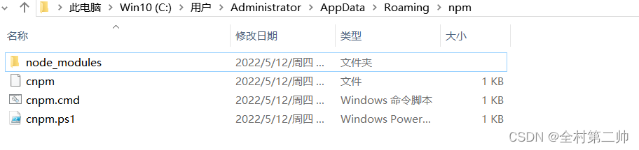 查看npm的目录,可以看见有cnpm 相关文件,说明安装成功了,淘宝镜像加速器存在一些bug,能少用尽量少用。