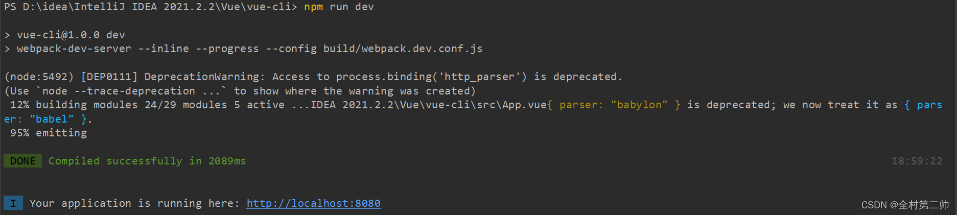 也可以在IDEA控制台里面输入 npm run dev,运行项目