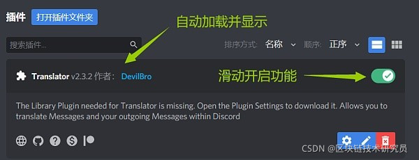 plugins文件夹在Discord插件功能区“打开插件文件夹”。(重新登录后,如果电脑没提示安装其他插件可以点选英文右键看到“翻译消息”)