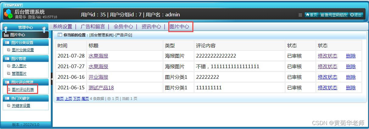 图片评论管理:默认评论是不显示的,管理员审核后前台可见