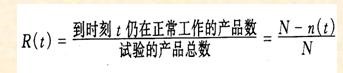 数学表达式:R(t)=P(T>t), t为规定时间,T为产品寿命。