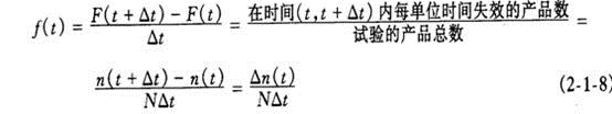 数学表达式: (F(t)是整个时间段内失效的概率,而f(t)是t内的很小的一段时间失效的概率,正好是F(t)的导数。