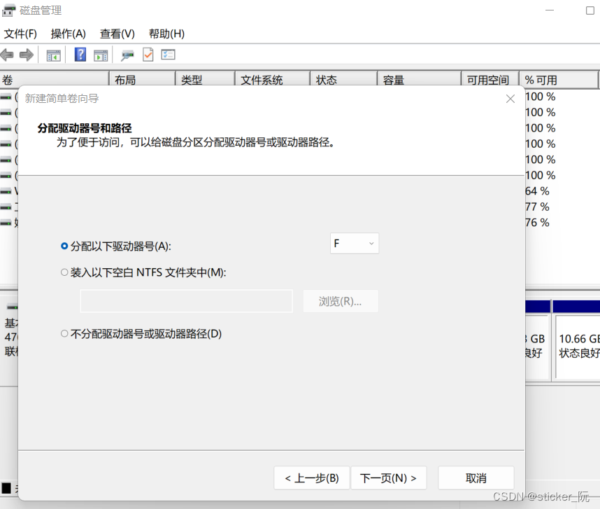 进入windows系统,点击Windows+X键或右键单击开始按钮,然后单击“磁盘管理”,进入磁盘管理页面。随后选择你看着不顺眼的某个盘(容量比较大的盘)右击选择压缩卷,选择压缩合适的大小,如下所示: