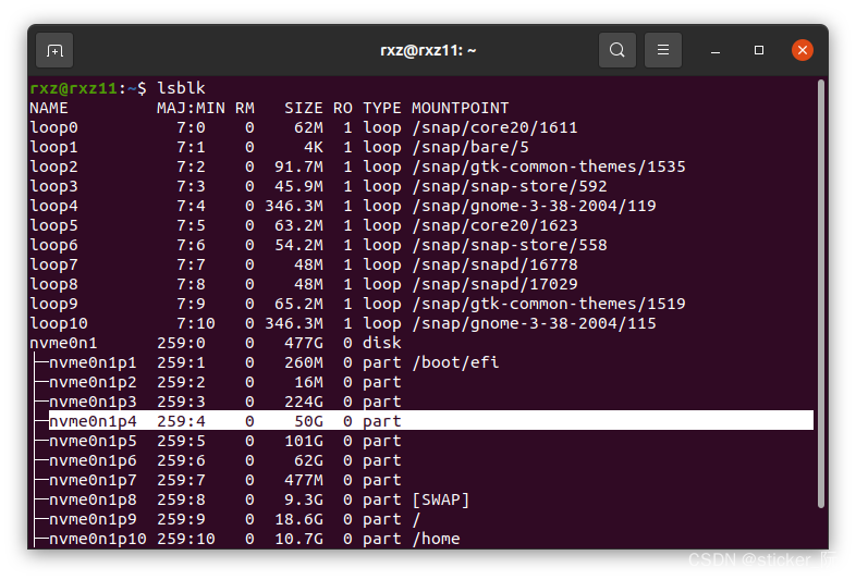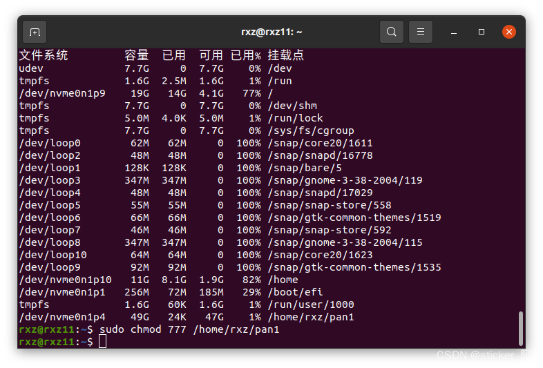 sudo mount /dev/nvme0n1p4 /home/rxz/pan1