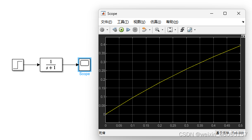 为了方便观察仿真时间数据,这里模型设置为定步长仿真,步长为0.1s。