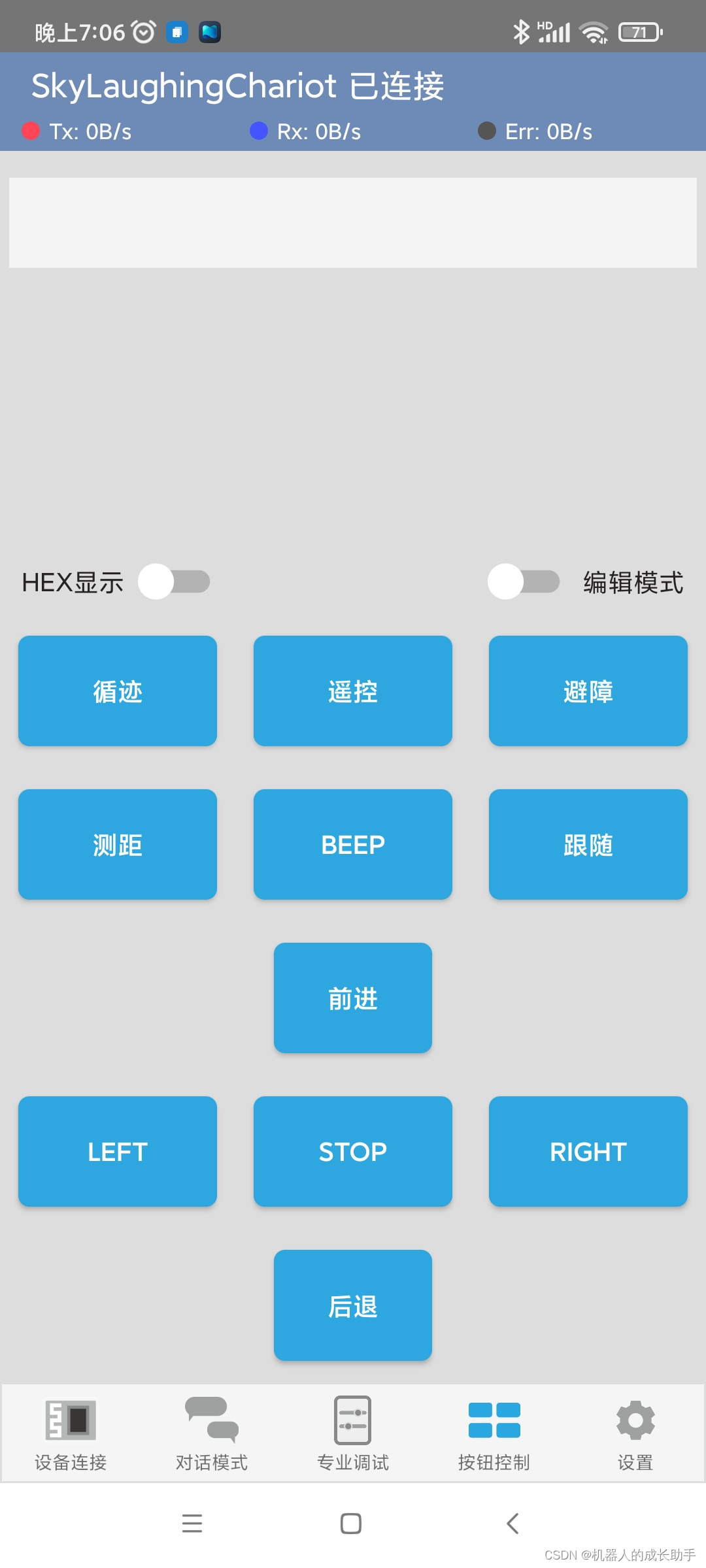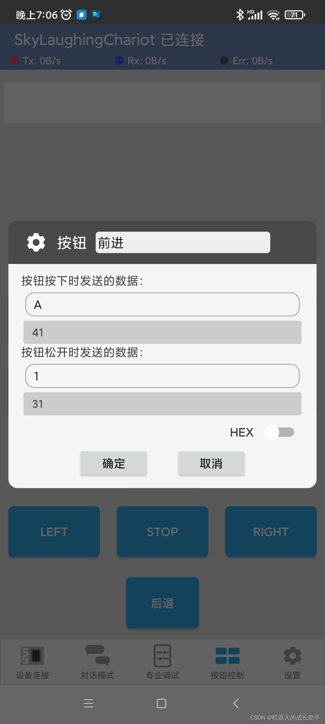 3、点击底部的按钮控制可以设置蓝牙发送的数据,控制DIY。