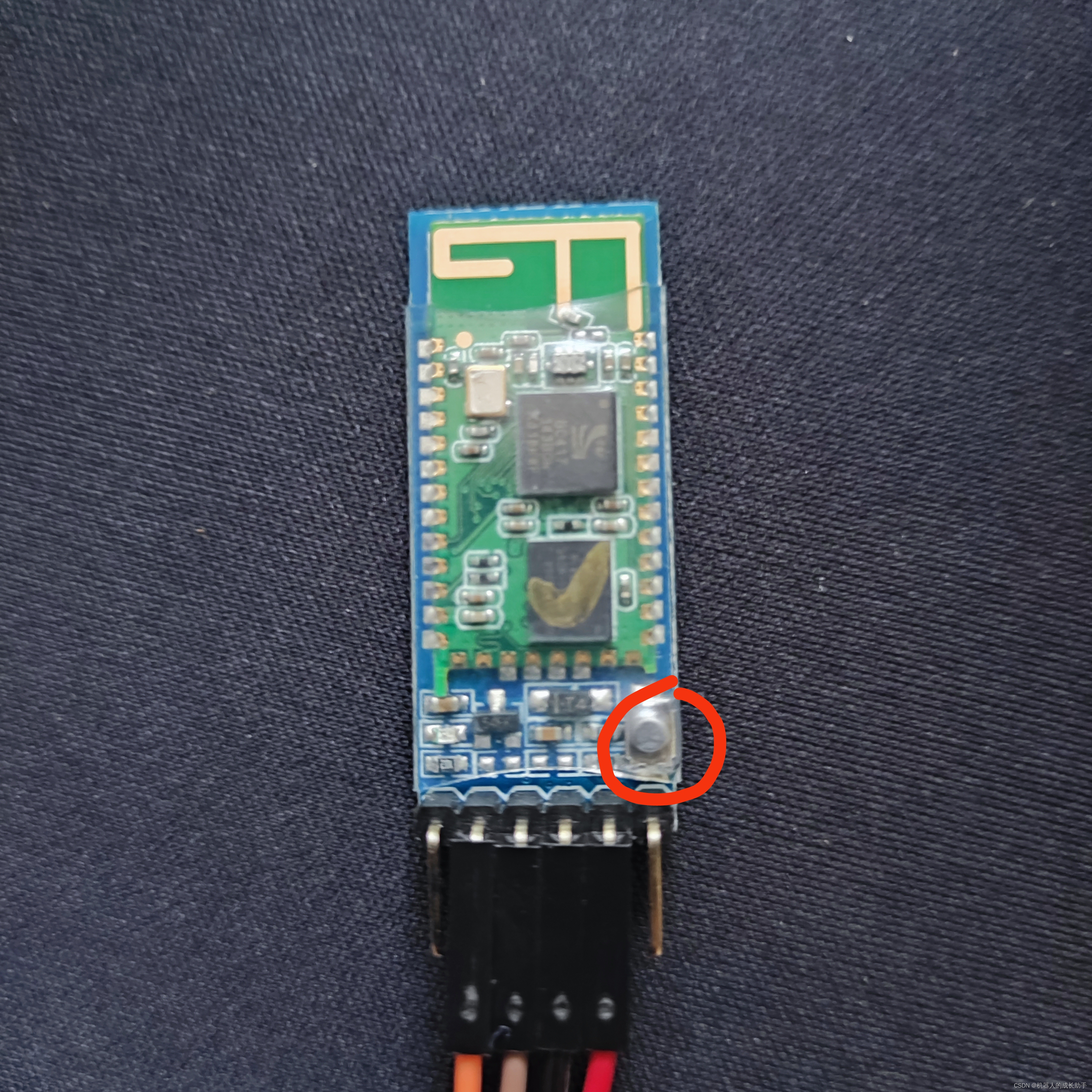 3、按住HC-05的黑色按钮,将USB转TTL与电脑连接,待HC-05的指示灯变为慢闪后松开。