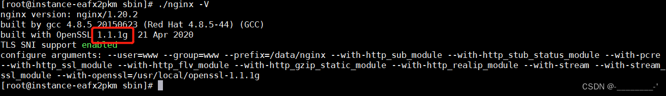./configure --user=www --group=www --prefix=/data/nginx --with-http_sub_module --with-http_stub_status_module --with-pcre --with-http_ssl_module --with-http_flv_module --with-http_gzip_static_module --with-http_realip_module --with-stream --with-stream_ssl_module --with-openssl=/usr/local/openssl-1.1.1g && make && make install